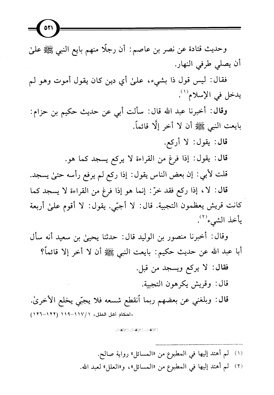 (¬2) لم أهتد إليها في المطبوع من "المسائل"، و"العلل" لعبد اللَّه.