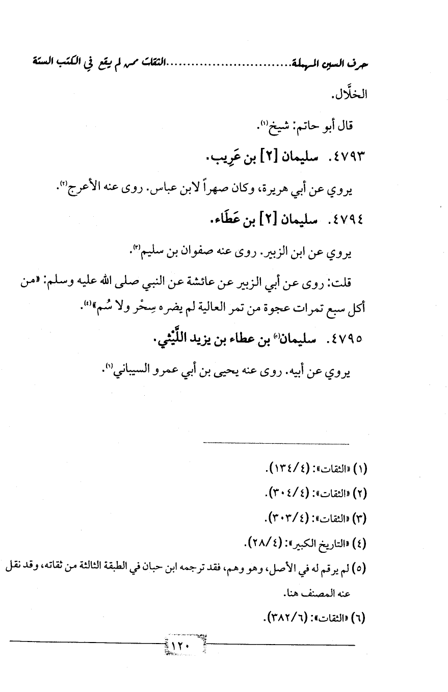 (¬5) لم يرقم له في الأصل، وهو وهم، فقد ترجمه ابن حبان في الطبقة الثالثة من ثقاته، وقد نقل عنه المصنف هنا.