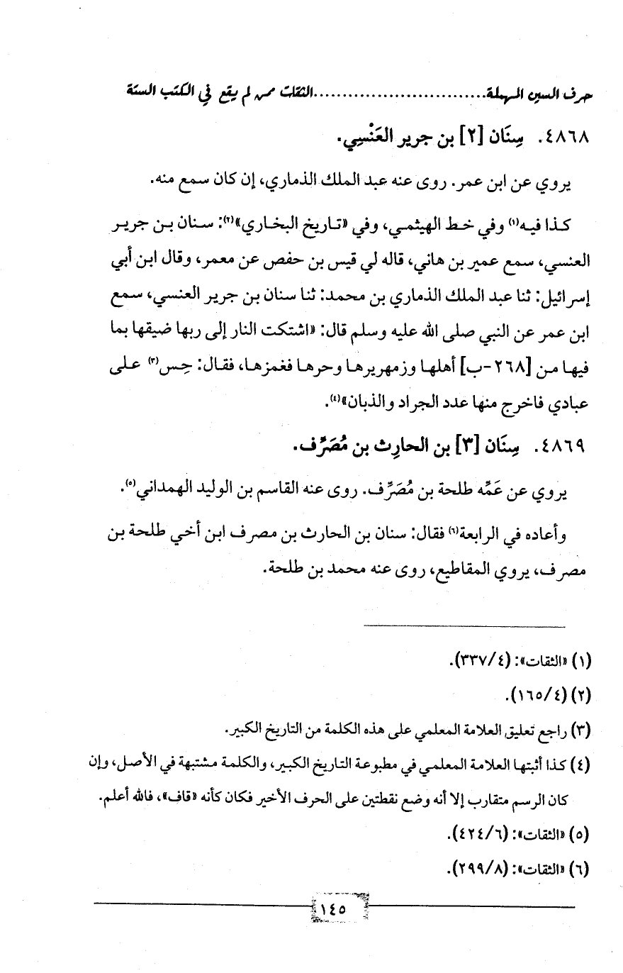 4869 - سِنَان [3] بن الحارِث بن مُصَرِّف.