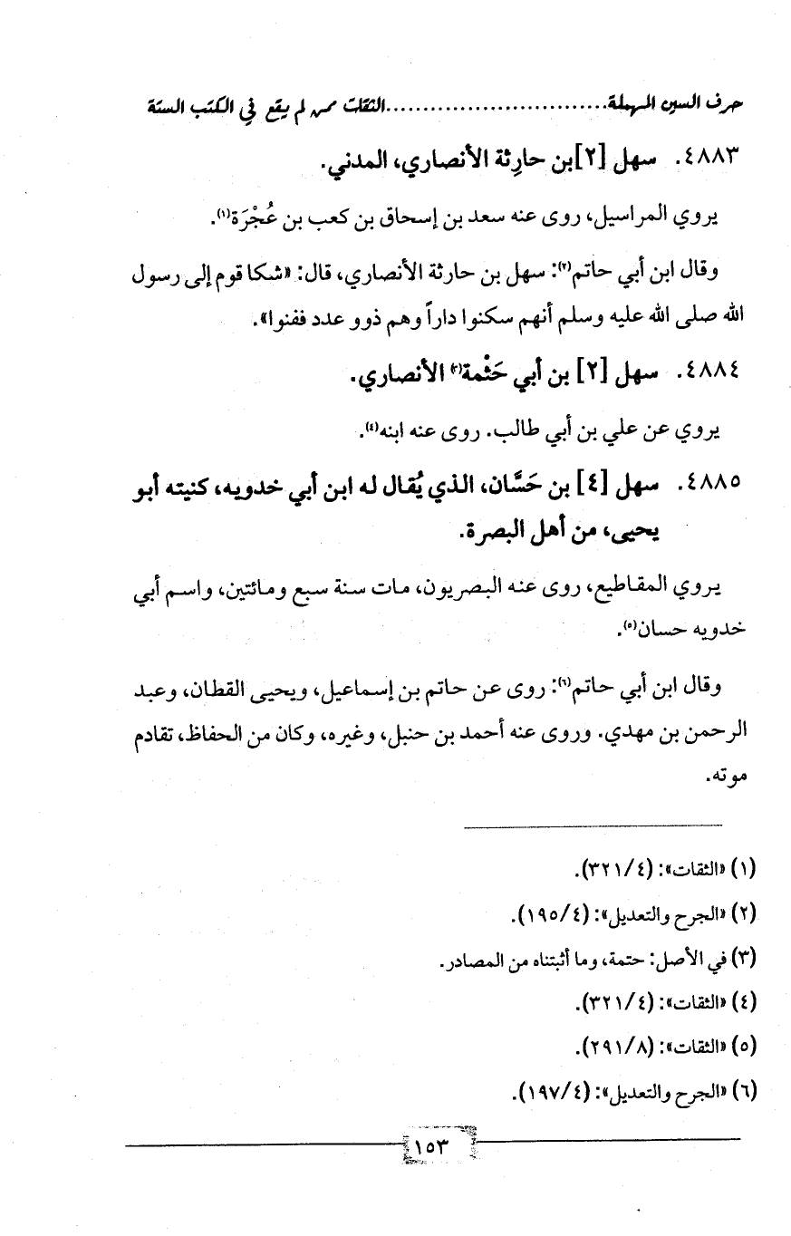4885 - سهل [4] بن حَسَّان، الذي يُقال له ابن أبي خدويه، كنيته أبو يحيى، من أهل البصرة.