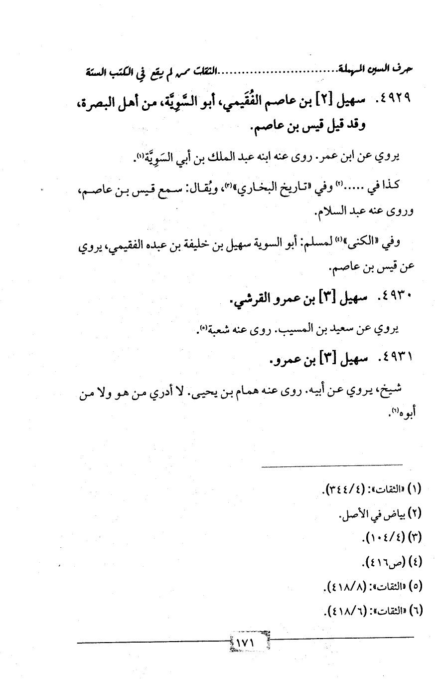 4929 - سهيل [2] بن عاصم الفُقَيمي، أبو السَّوِيَّة، من أهل البصرة، وقد قيل قيس بن عاصم.