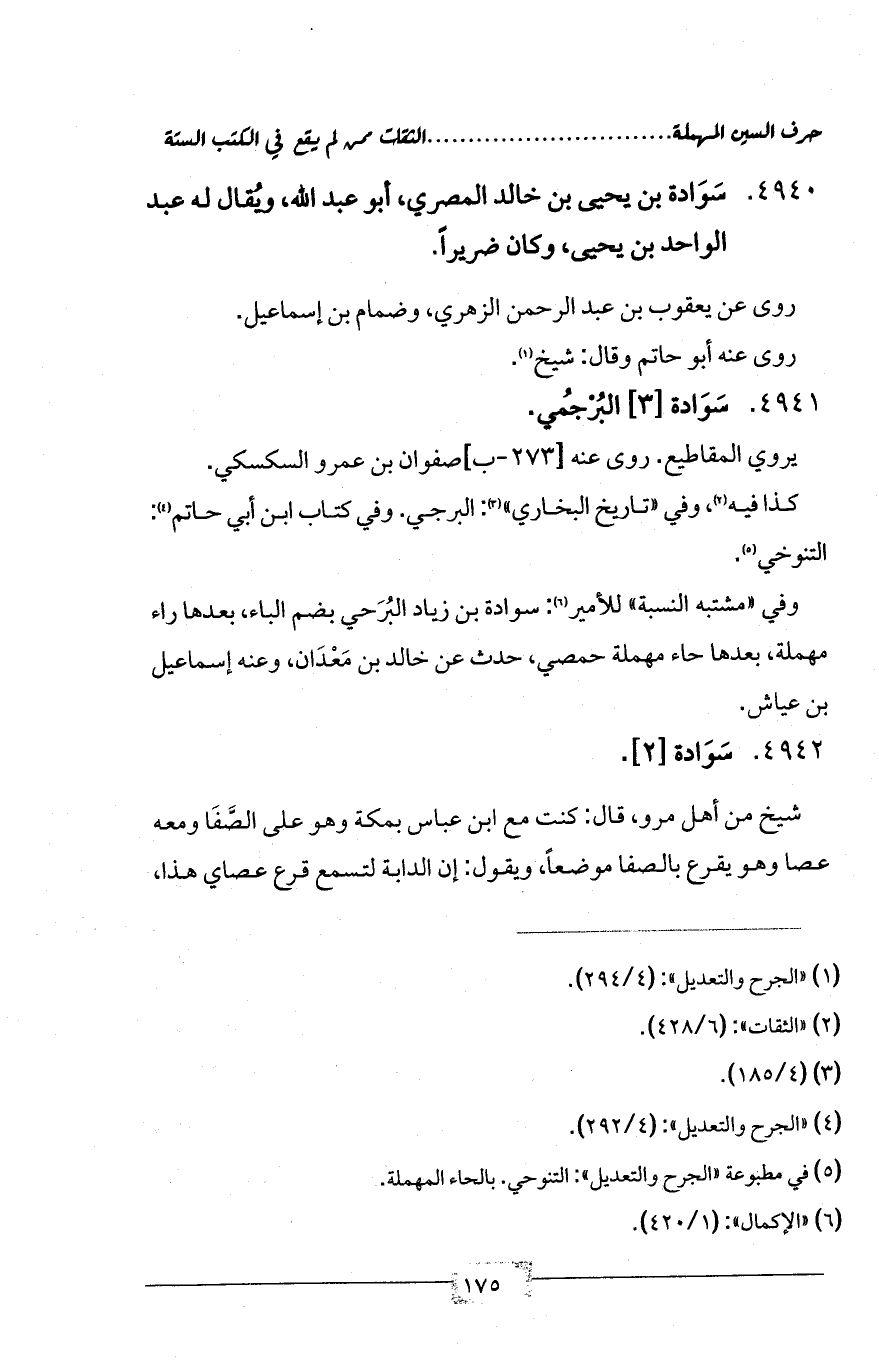 4940 - سَوَادة بن يحيى بن خالد المصري، أبو عبد الله، ويُقال له عبد الواحد بن يحيى، وكان ضريراً.