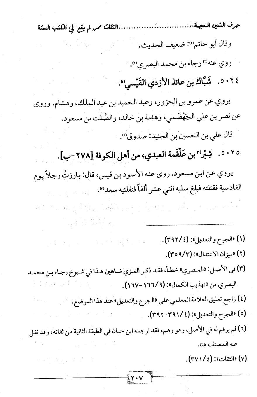 5025 - شِبْر (¬6) بن عَلْقَمة العبدي، من أهل الكوفة [278 - ب].