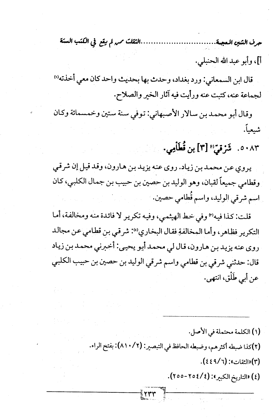 (¬4) «التاريخ الكبير»: (4/ 254 - 255).
