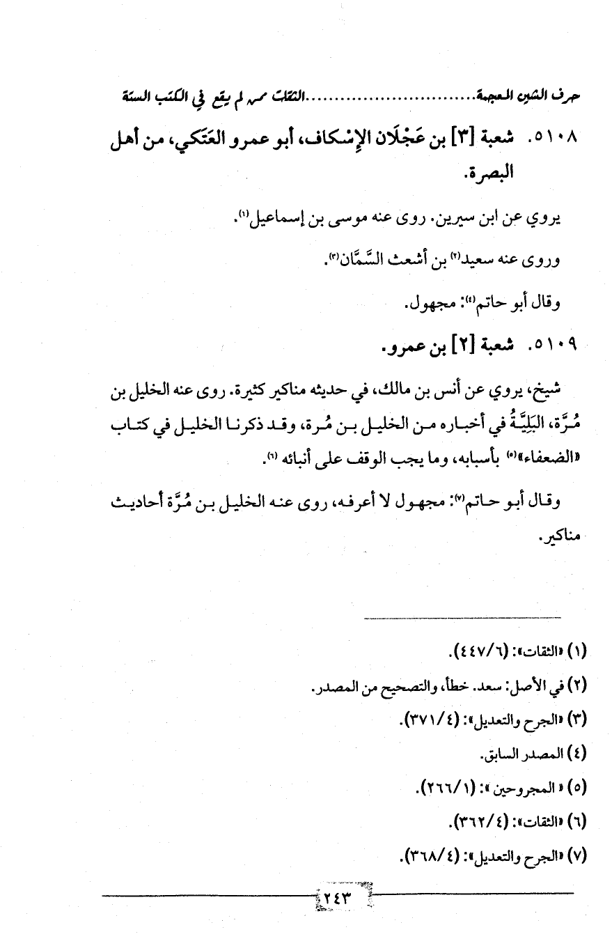 5108 - شعبة [3] بن عَجْلَان الإِسْكاف، أبو عمرو العَتَكي، من أهل البصرة.