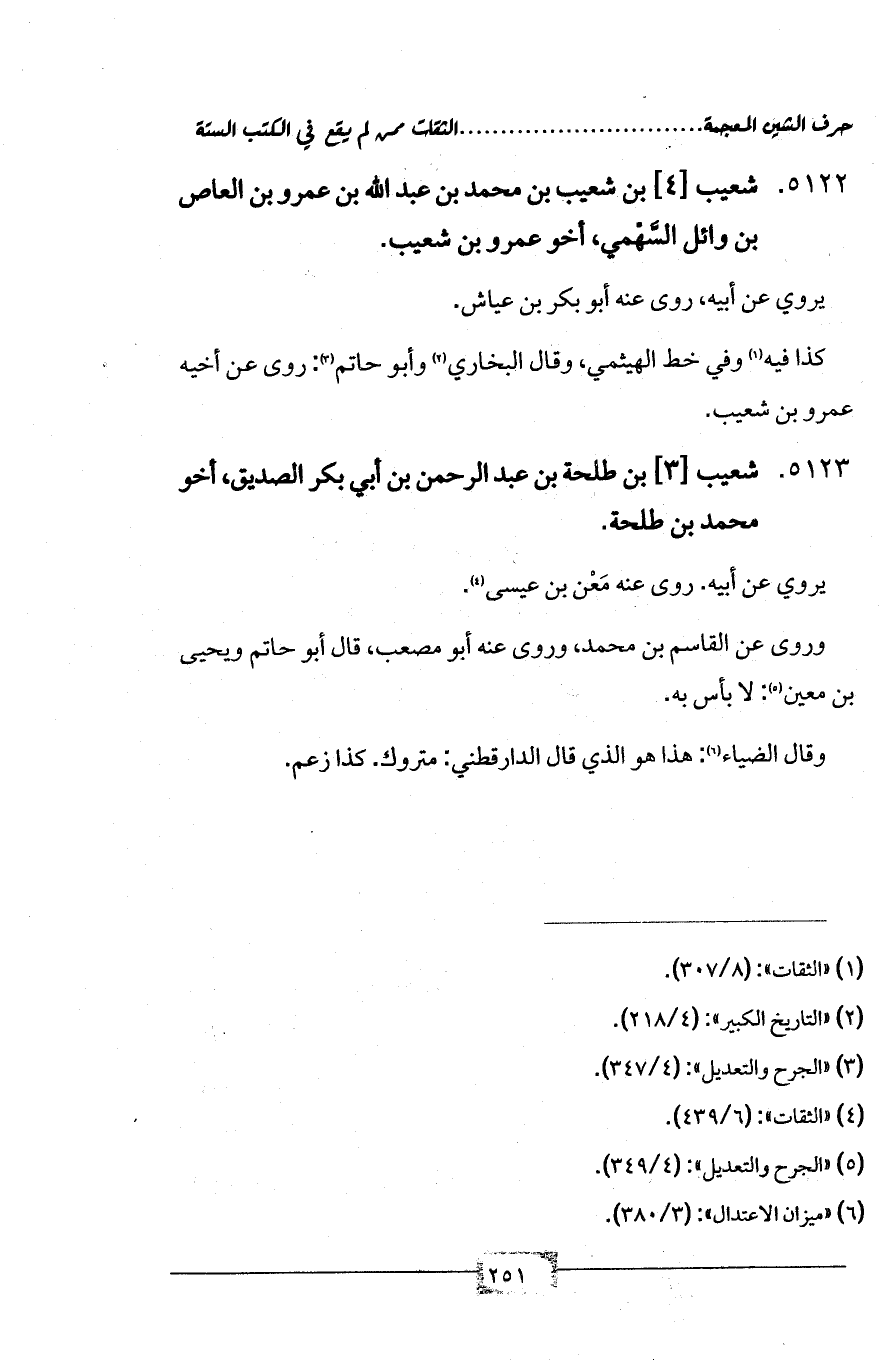 5122 - شعيب [4] بن شعيب بن محمد بن عبد الله بن عمرو بن العاص بن وائل السَّهْمي، أخو عمرو بن شعيب.