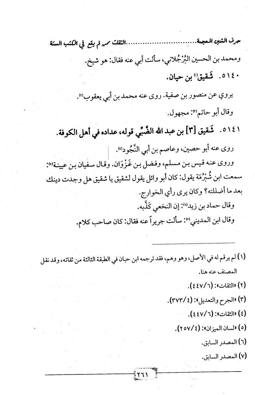 5141 - شَقيق [3] بن عبد الله الضَّبِّي قوله، عداده في أهل الكوفة.