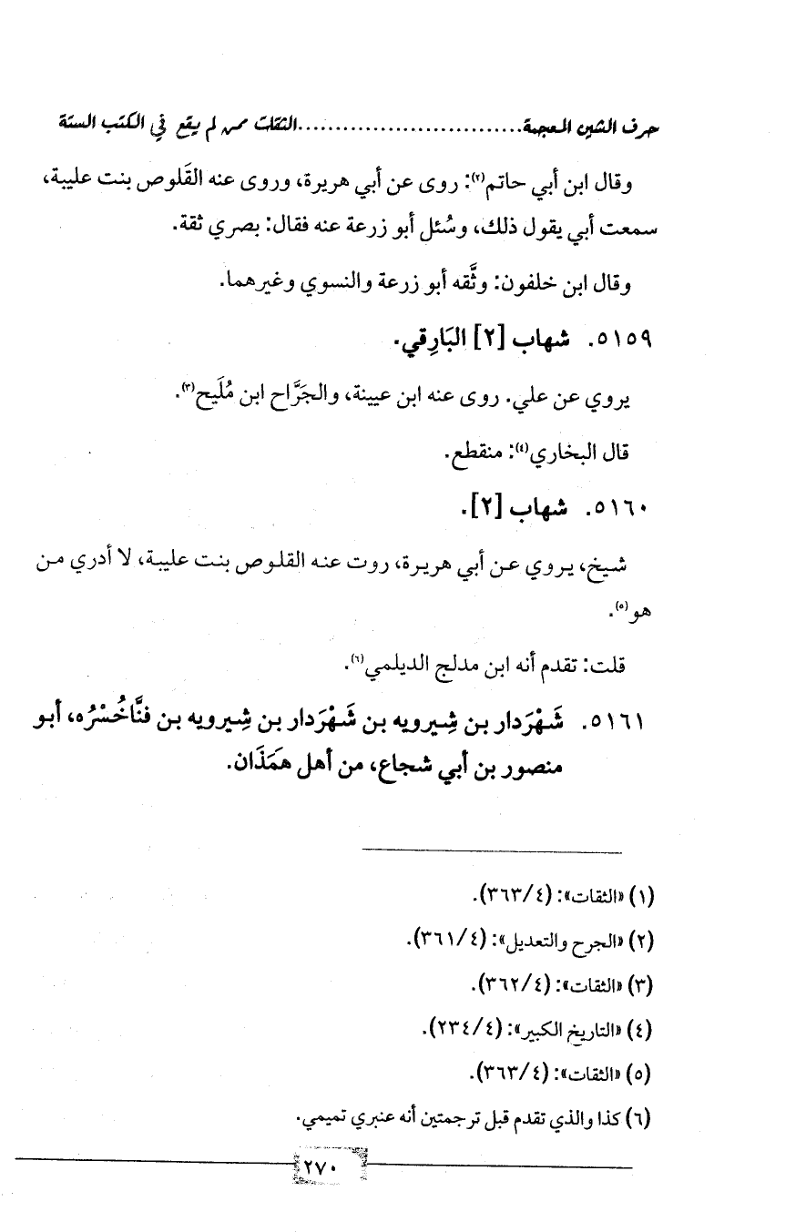 5161 - شَهْرَدار بن شِيرويه بن شَهْرَدار بن شِيرويه بن فنَّاخُسْرُه، أبو منصور بن أبي شجاع، من أهل هَمَذَان.