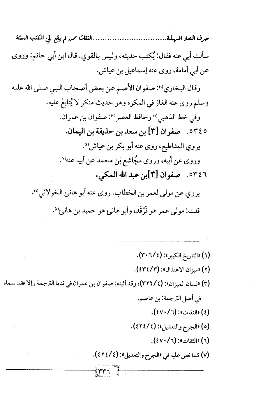 (¬3) «لسان الميزان»: (4/ 322)، وقد أثبته: صفوان بن عمران في ثنايا الترجمة وإلا فقد سماه في أصل الترجمة: بن عاصم.