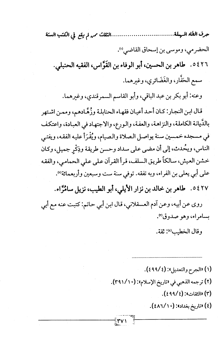 5426 - طاهر بن الحسين، أبو الوفاء بن القَوَّاس، الفقيه الحنبلي.