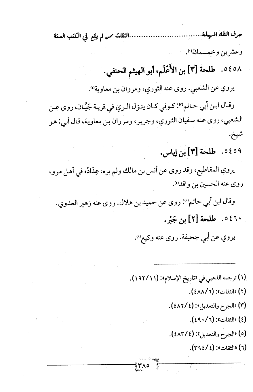 5458 - طلحة [3] بن الأَعْلَم، أبو الهيثم الحنفي.