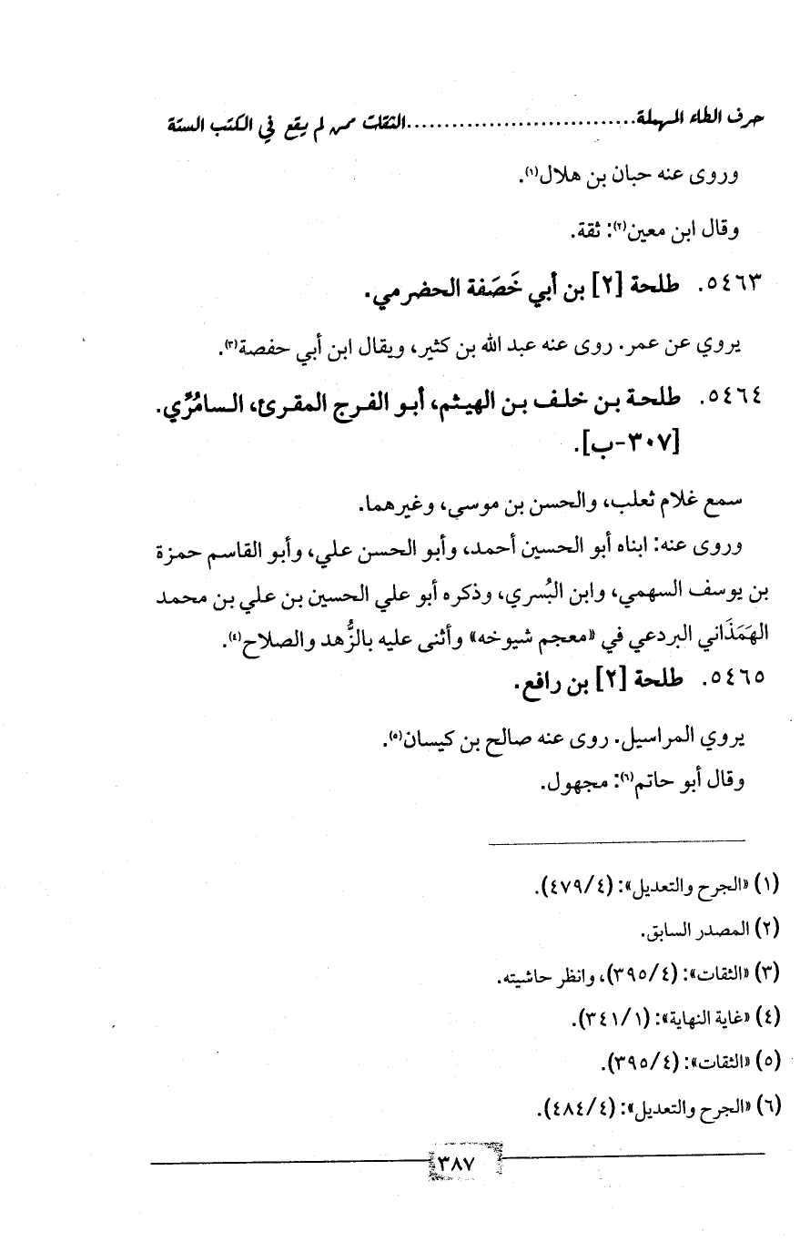 5464 - طلحة بن خلف بن الهيثم، أبو الفرج المقرئ، السامُرِّي. [307 - ب].