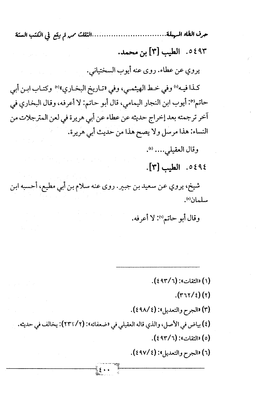 (¬6) «الجرح والتعديل»: (4/ 497).