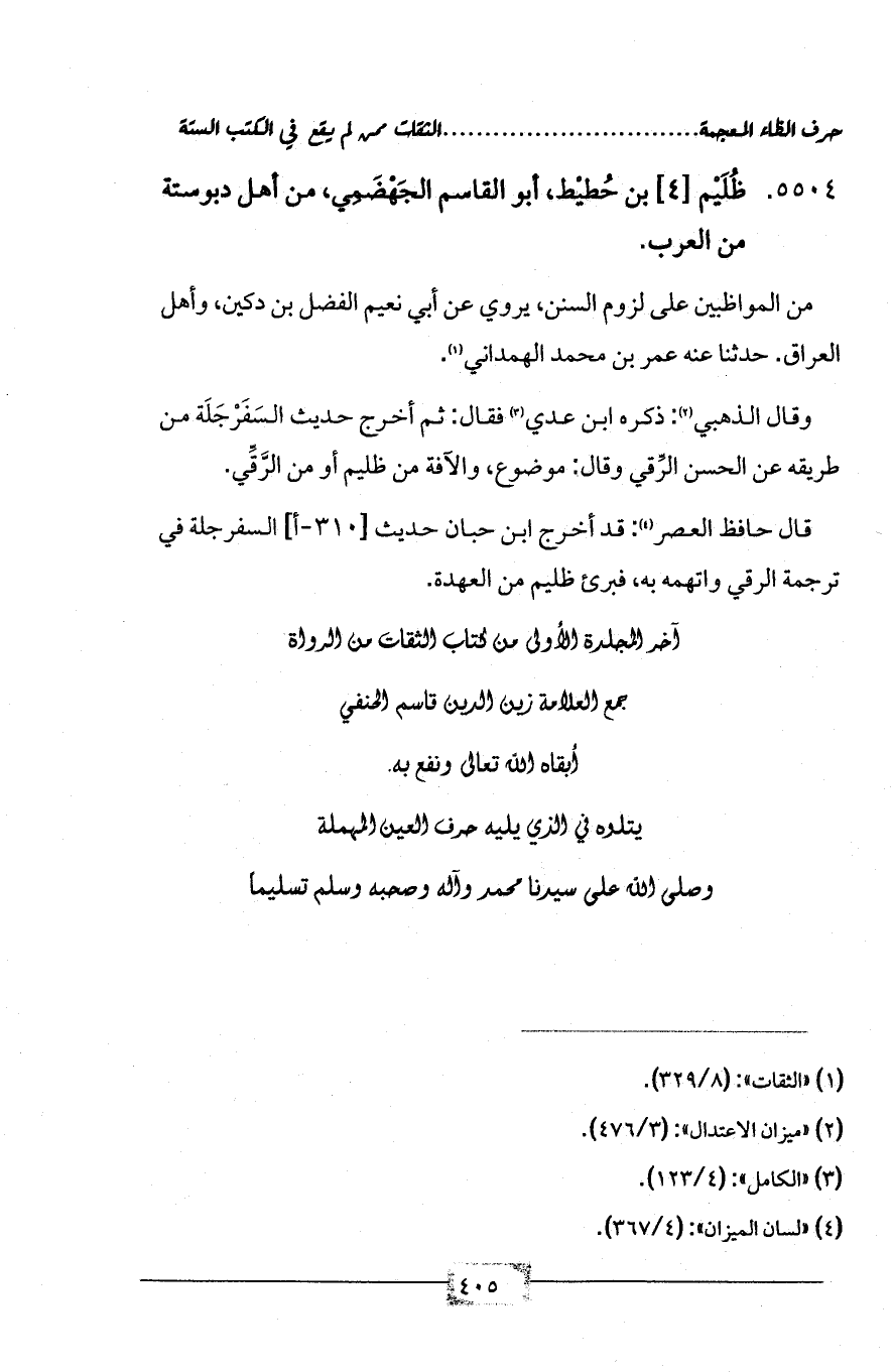 آخر المجلدة الأولى من كتاب الثقات من الرواة