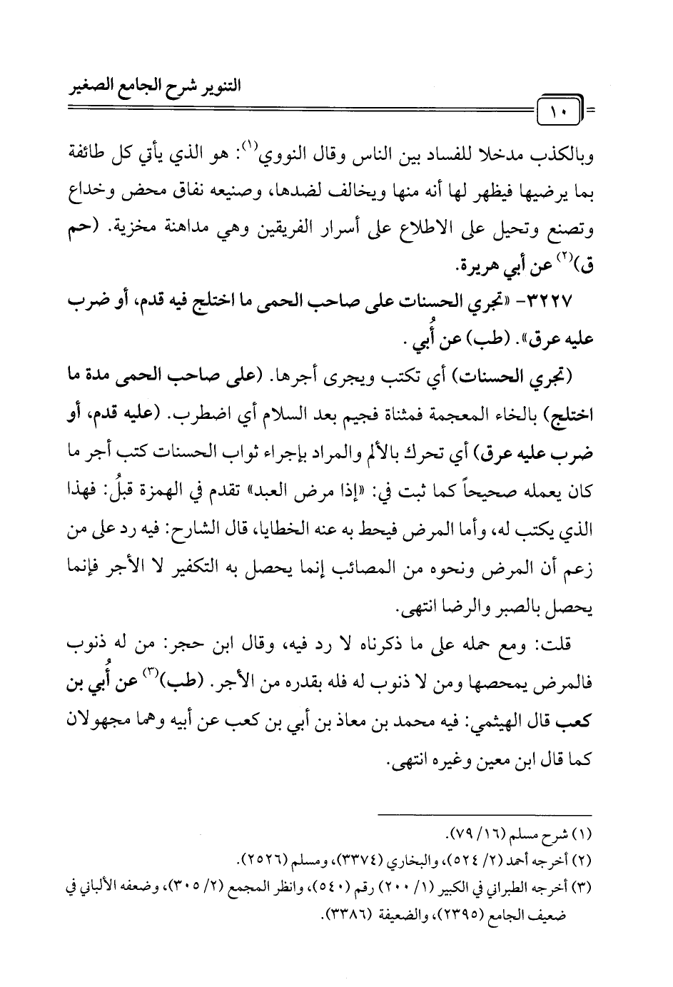 3227 - "تجري الحسنات على صاحب الحمى ما اختلج فيه قدم، أو ضرب عليه عرق". (طب) عن أُبي.