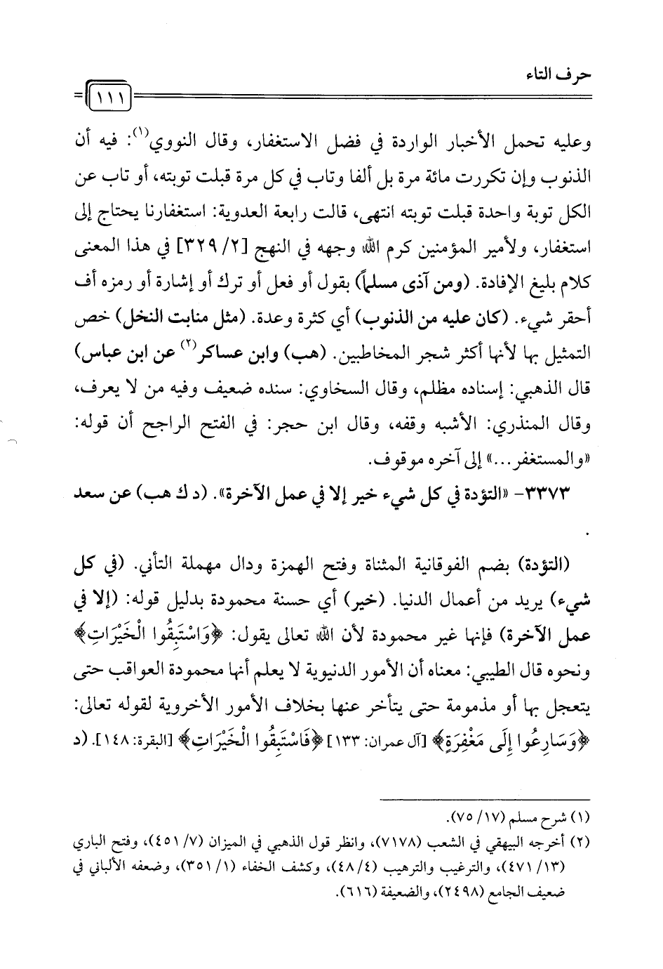 (¬2) أخرجه البيهقي في الشعب (7178)، وانظر قول الذهبي في الميزان (7/ 451)، وفتح الباري (13/ 471)، والترغيب والترهيب (4/ 48)، وكشف الخفاء (1/ 351)، وضعفه الألباني في ضعيف الجامع (2498)، والضعيفة (616).