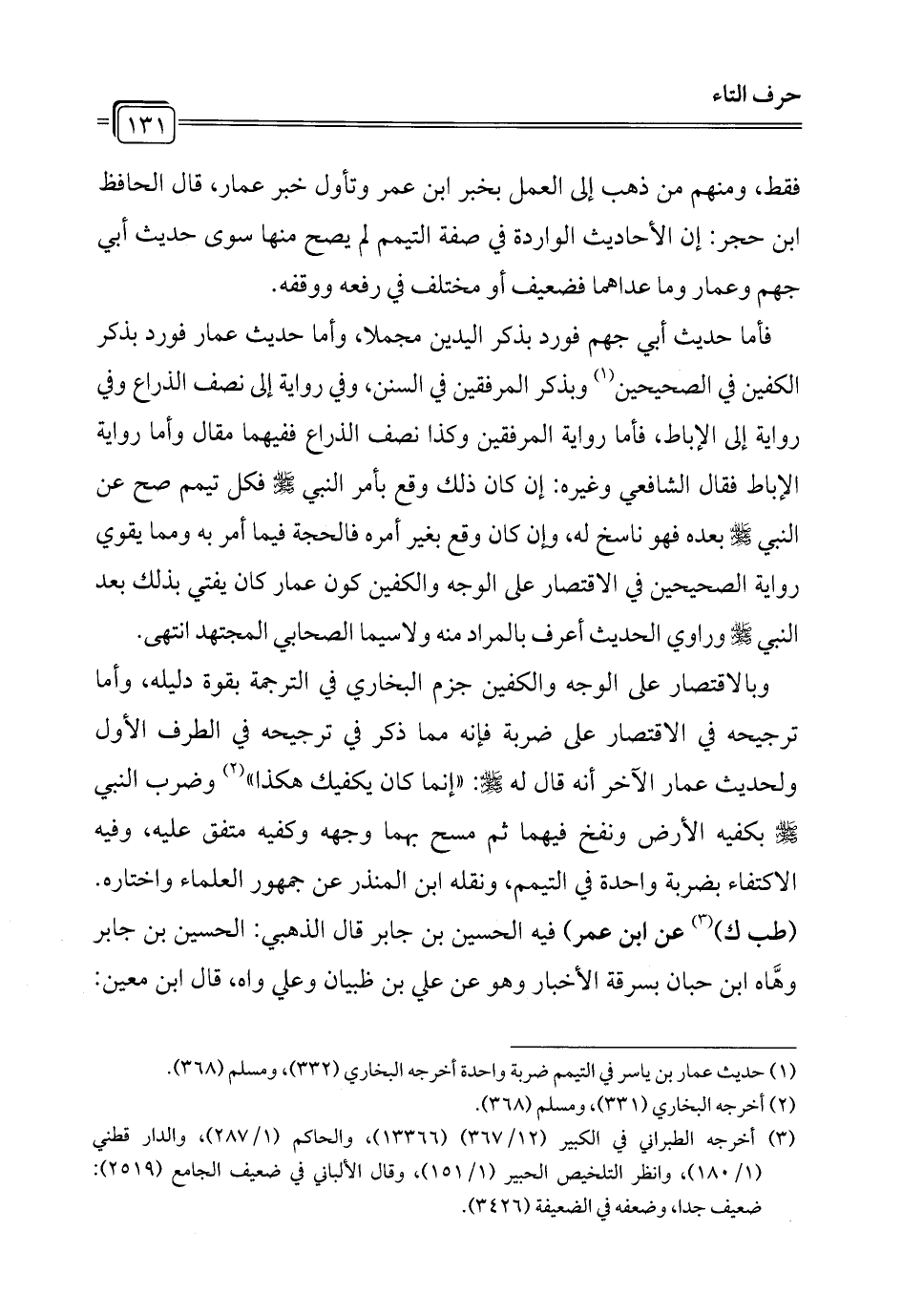 (¬1) حديث عمار بن ياسر في التيمم ضربة واحدة أخرجه البخاري (332)، ومسلم (368).