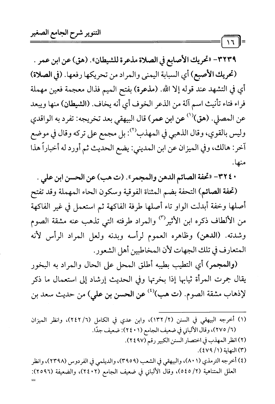 3239 - "تحريك الأصابع في الصلاة مذعرة للشيطان". (هق) عن ابن عمر.