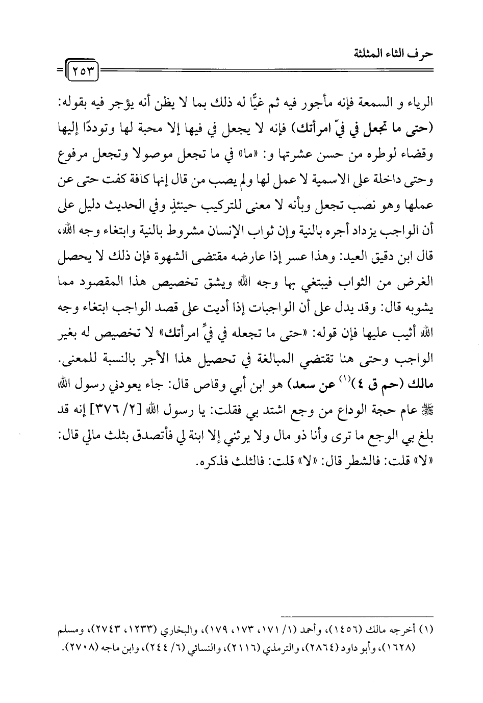 (¬1) أخرجه مالك (1456)، وأحمد (1/ 171، 173، 179)، والبخاري (1233، 2743)، ومسلم (1628)، وأبو داود (2864)، والترمذي (2116)، والنسائي (6/ 244)، وابن ماجه (2708).