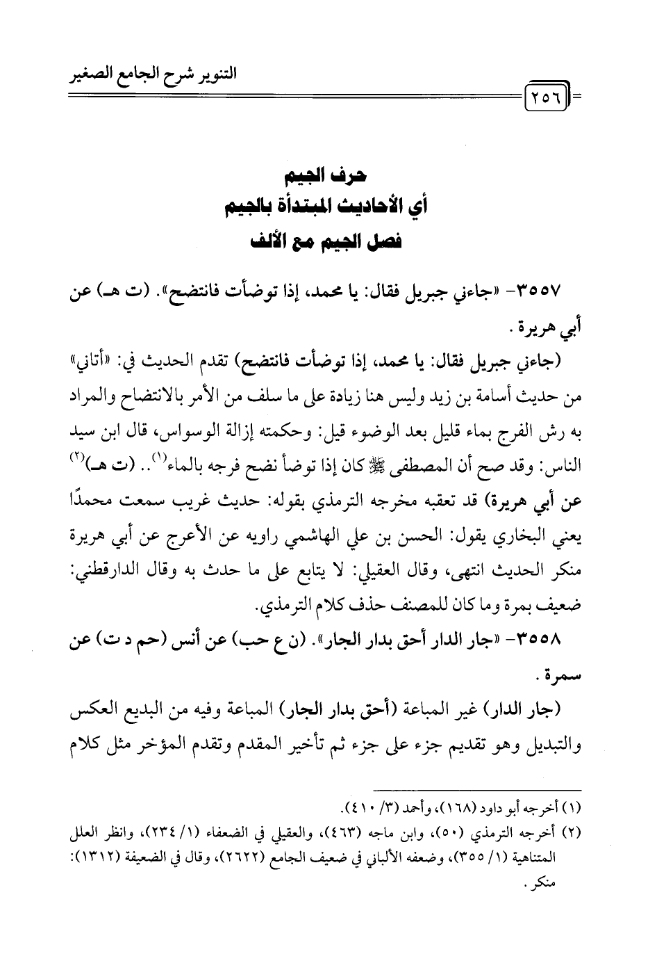 3557 - " جاءني جبريل فقال: يا محمد، إذا توضأت فانتضح". (ت هـ) عن أبي هريرة.