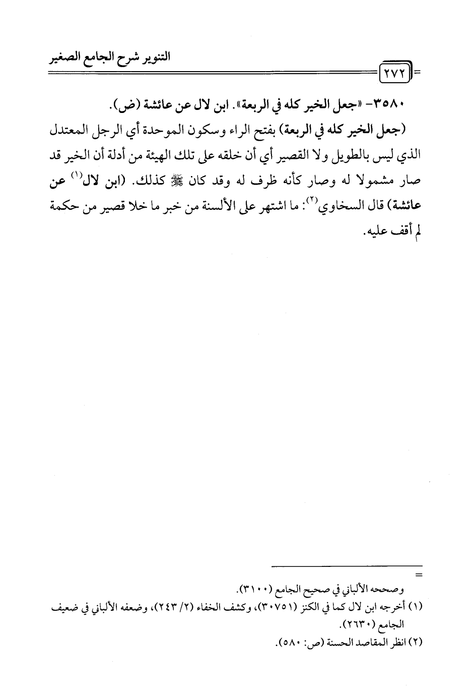 3580 - "جعل الخير كله في الربعة". ابن لال عن عائشة (ض).