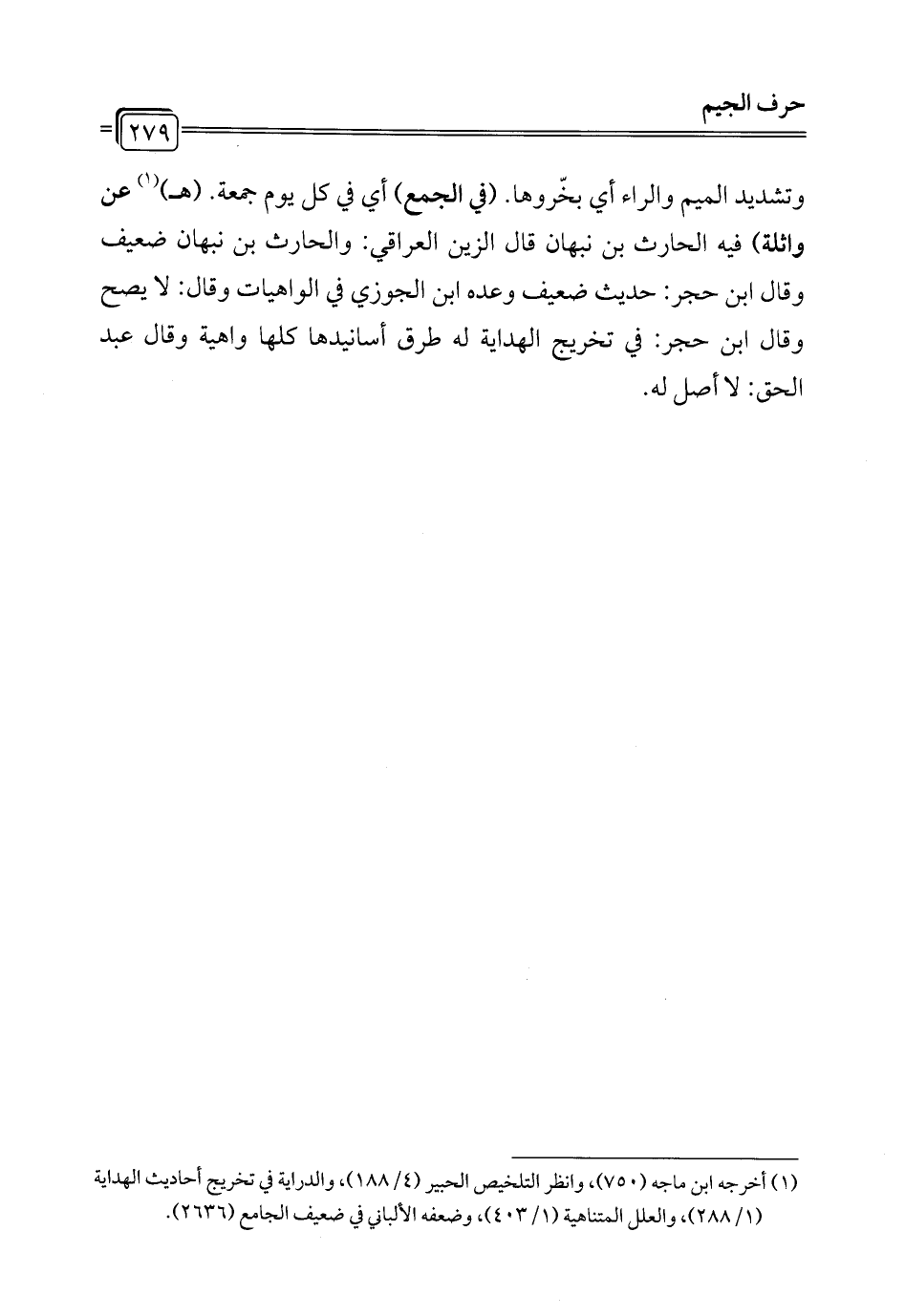 (¬1) أخرجه ابن ماجه (750)، وانظر التلخيص الحبير (4/ 188)، والدراية في تخريج أحاديث الهداية (1/ 288)، والعلل المتناهية (1/ 403)، وضعفه الألباني في ضعيف الجامع (2636).