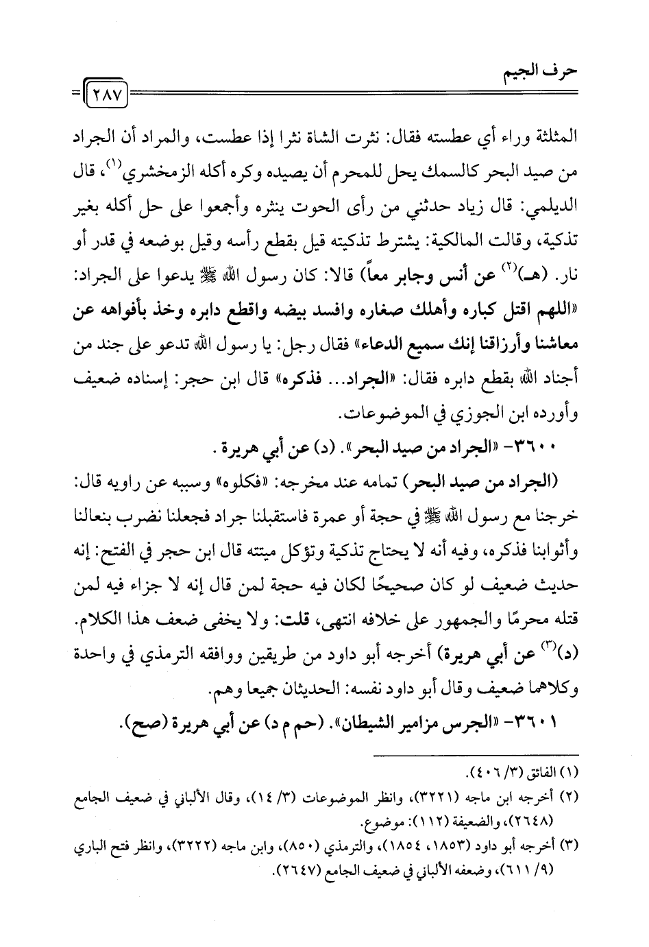3600 - "الجراد من صيد البحر". (د) عن أبي هريرة.