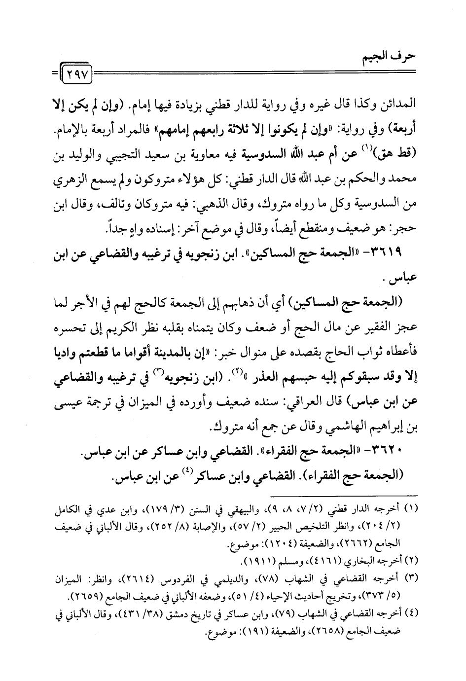 3620 - "الجمعة حج الفقراء". القضاعي وابن عساكر عن ابن عباس.