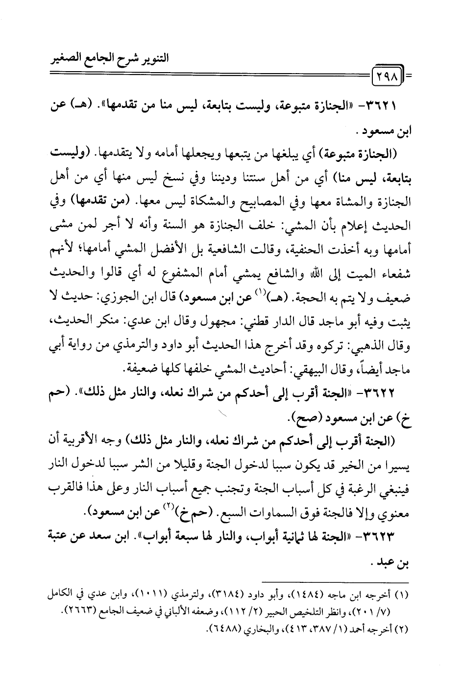 3621 - "الجنازة متبوعة، وليست بتابعة، ليس منا من تقدمها". (هـ) عن ابن مسعود.
