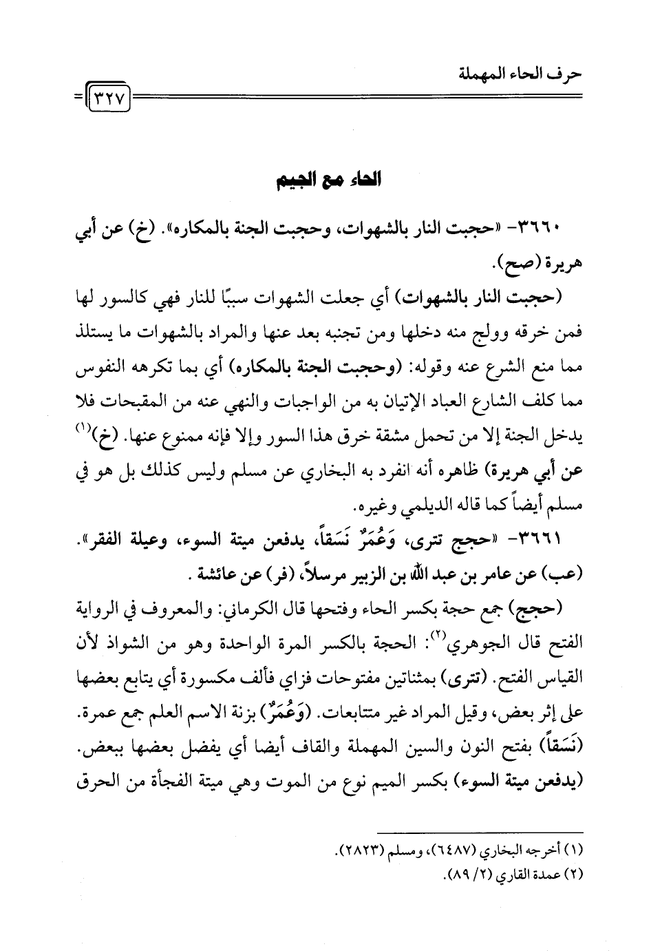 3660 - " حجبت النار بالشهوات، وحجبت الجنة بالمكاره". (خ) عن أبي هريرة (صح).