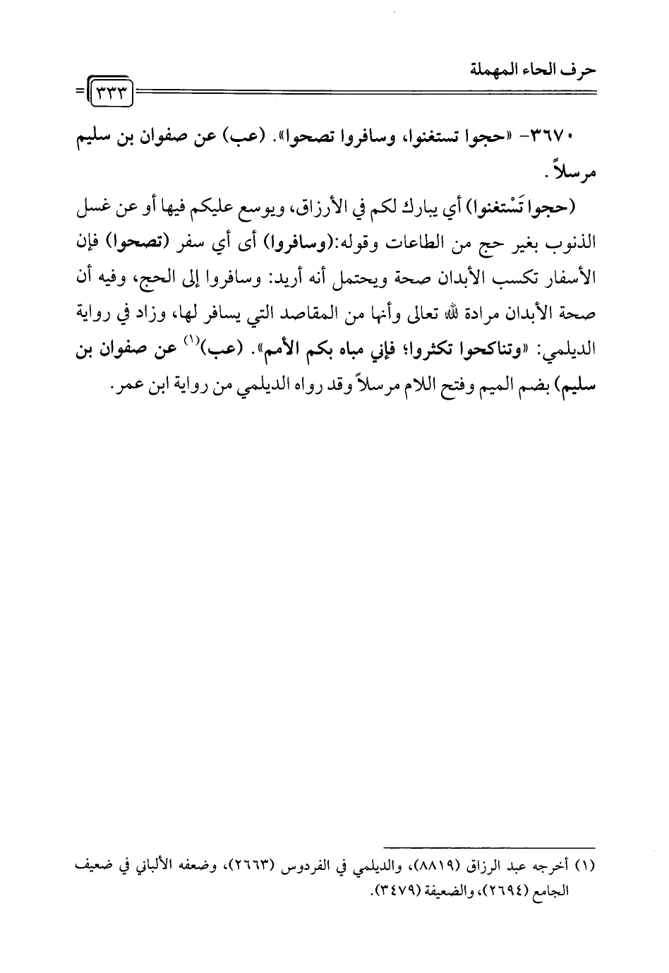 3670 - "حجوا تستغنوا، وسافروا تصحوا". (عب) عن صفوان بن سليم مرسلاً.