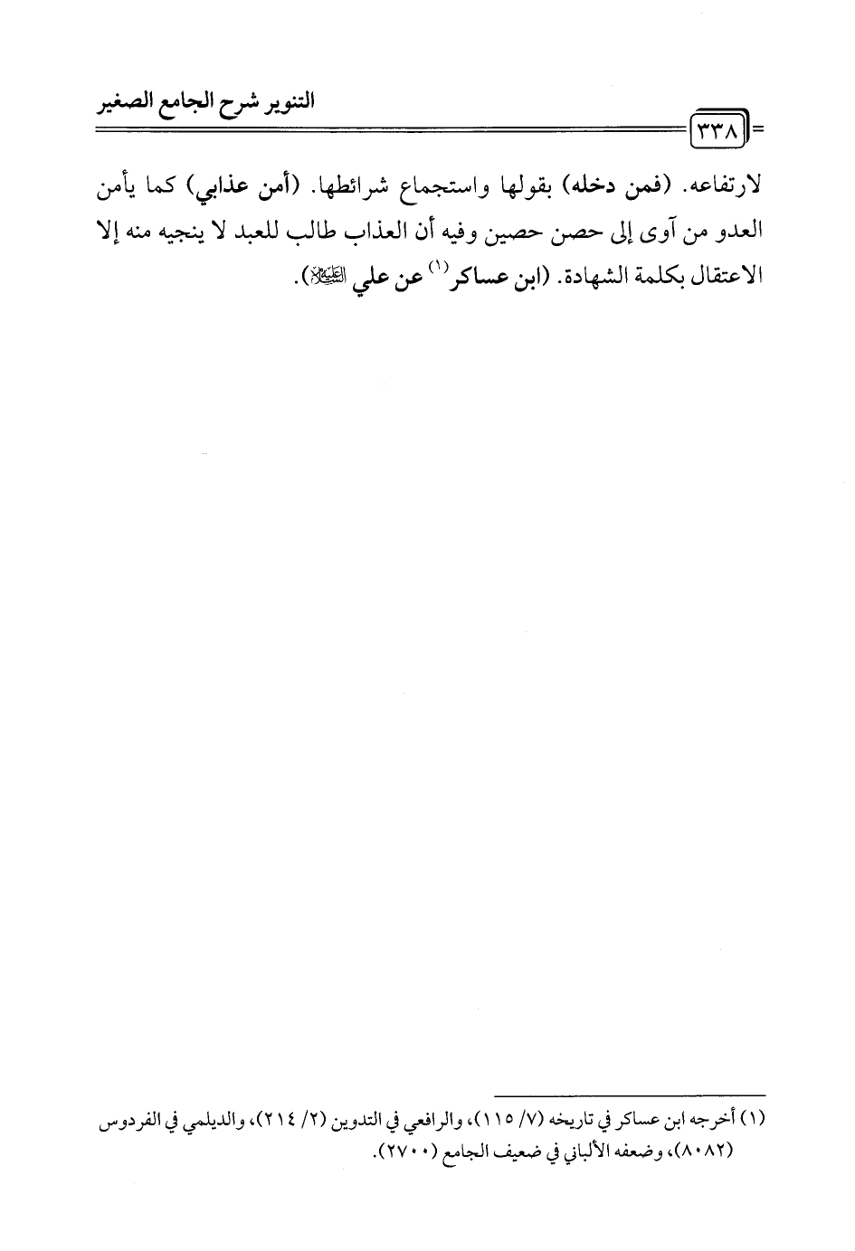 (¬1) أخرجه ابن عساكر في تاريخه (7/ 115)، والرافعي في التدوين (2/ 214)، والديلمي في الفردوس (8082)، وضعفه الألباني في ضعيف الجامع (2700).