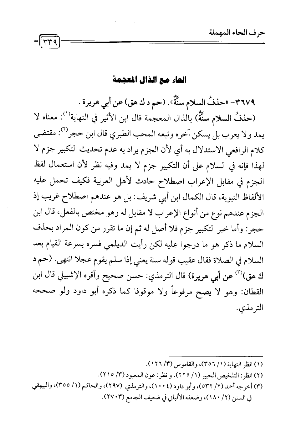 3679 - " حذفُ السلام سنَّةٌ". (حم د ك هق) عن أبي هريرة.