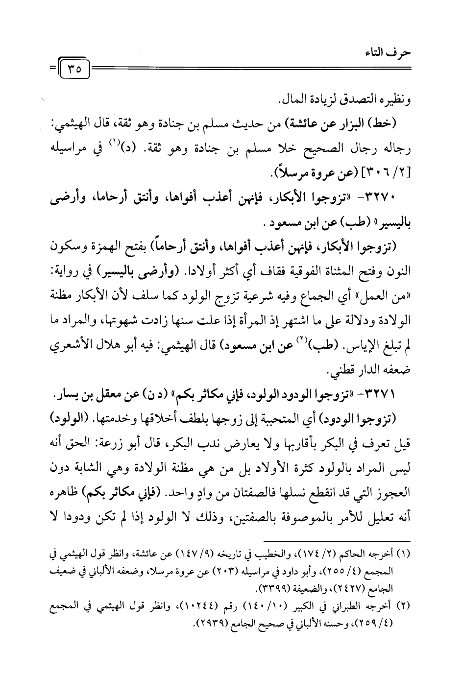 3271 - "تزوجوا الودود الولود، فإني مكاثر بكم" (د ن) عن معقل بن يسار.