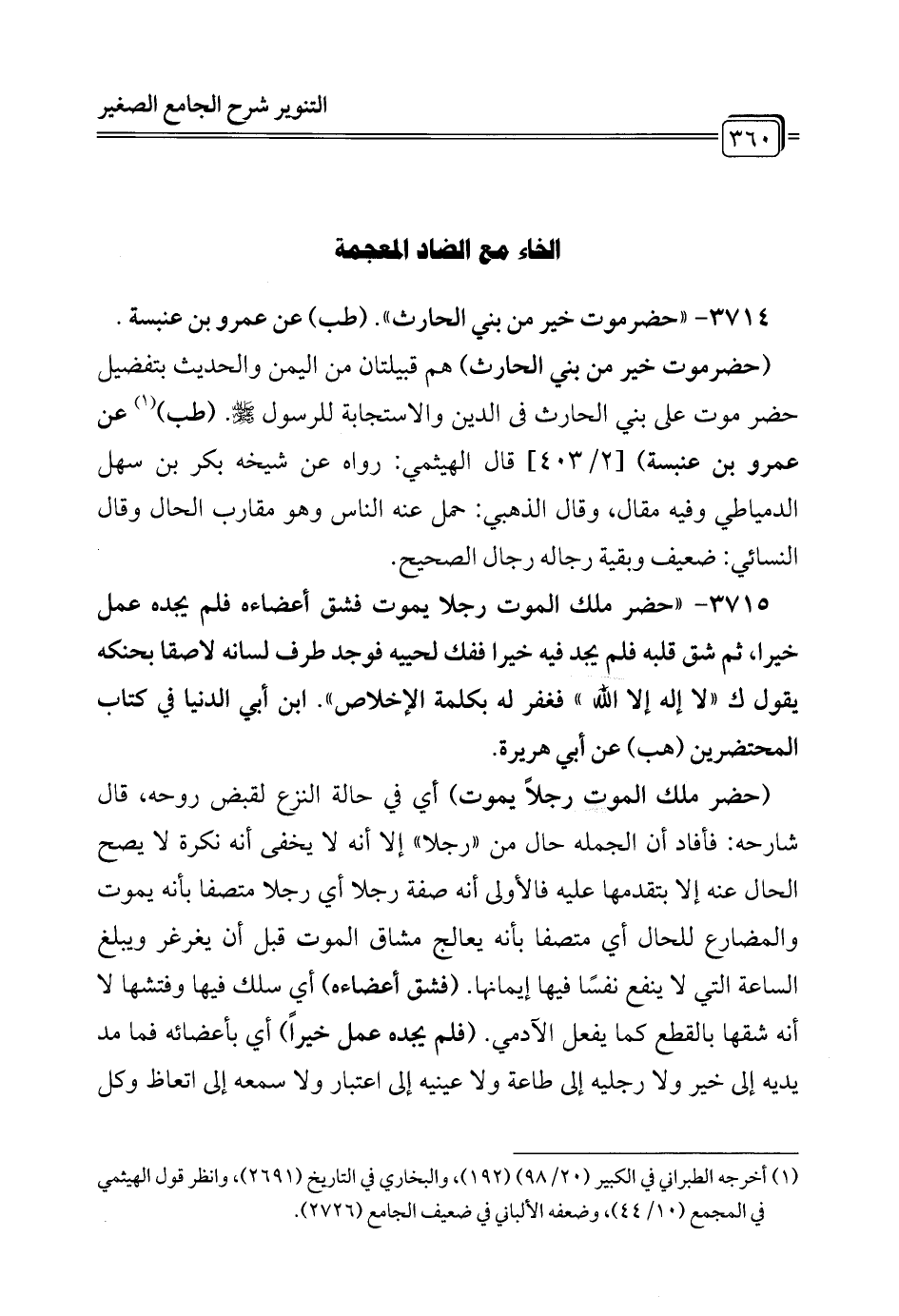 3714 - " حضرموت خير من بني الحارث". (طب) عن عمرو بن عنبسة.
