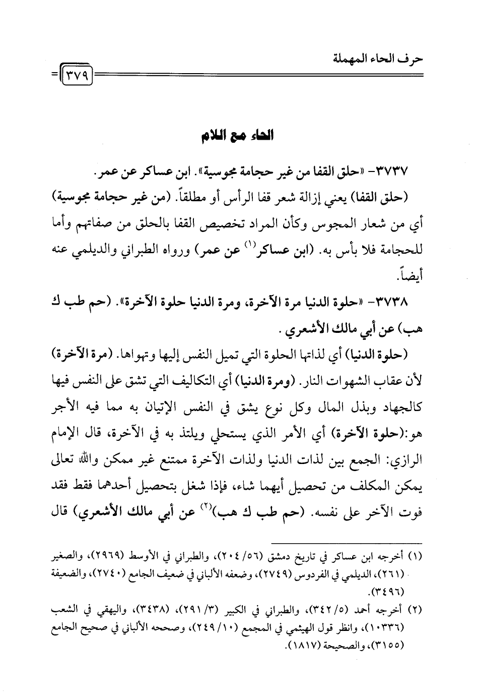3737 - " حلق القفا من غير حجامة مجوسية". ابن عساكر عن عمر.