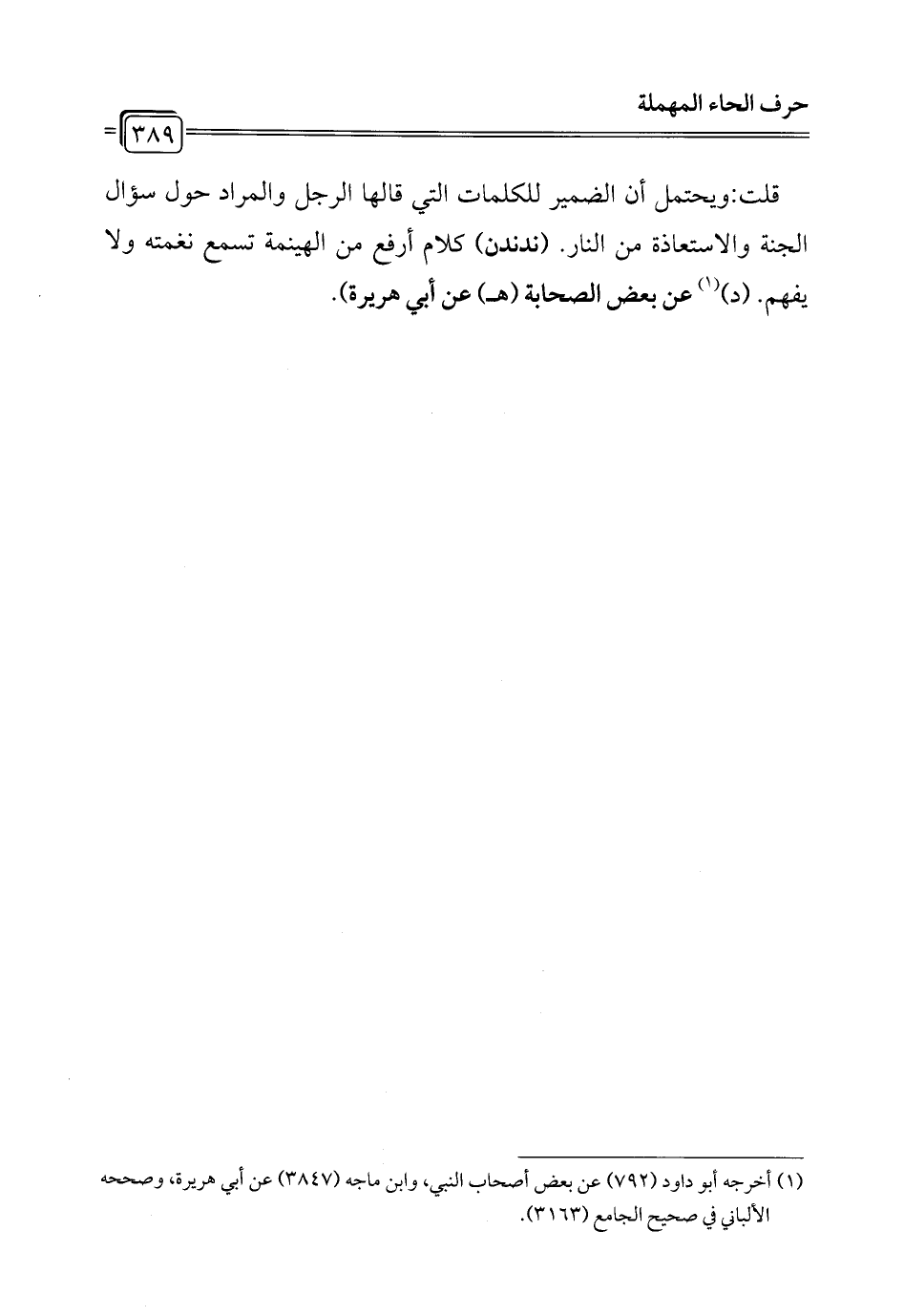 قلت: ويحتمل أن الضمير للكلمات التي قالها الرجل والمراد حول سؤال الجنة والاستعاذة من النار. (ندندن) كلام أرفع من الهينمة تسمع نغمته ولا يفهم. (د) (¬1) عن بعض الصحابة (هـ) عن أبي هريرة).