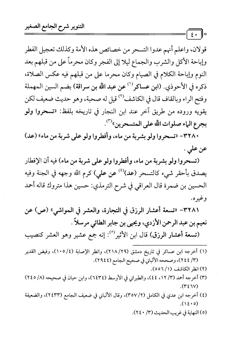 3280 - "تسحروا ولو بشربة من ماء، وأفطروا ولو على شربة من ماء" (عد) عن علي.