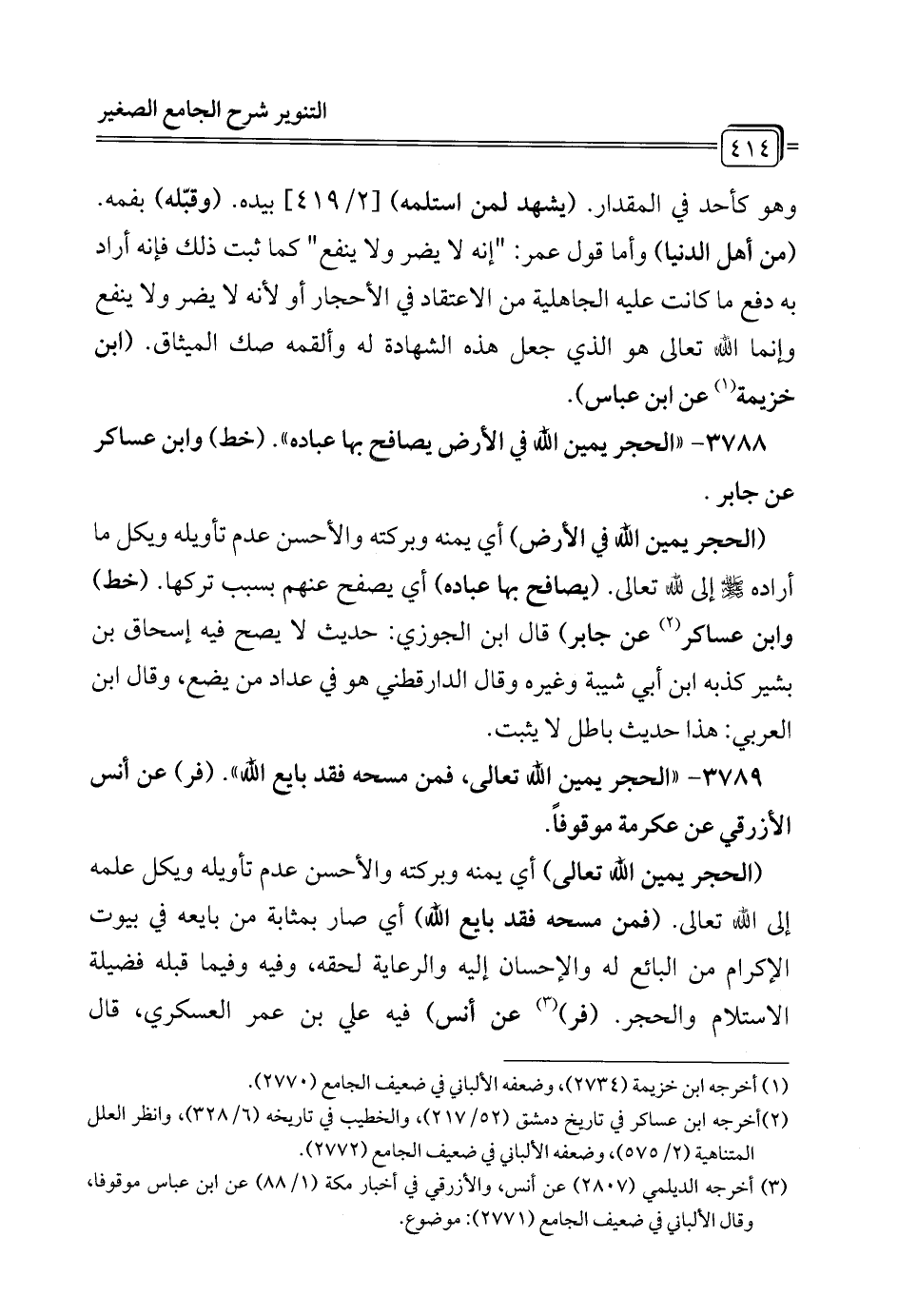 3788 - "الحجر يمين الله في الأرض يصافح بها عباده". (خط) وابن عساكر عن جابر.
