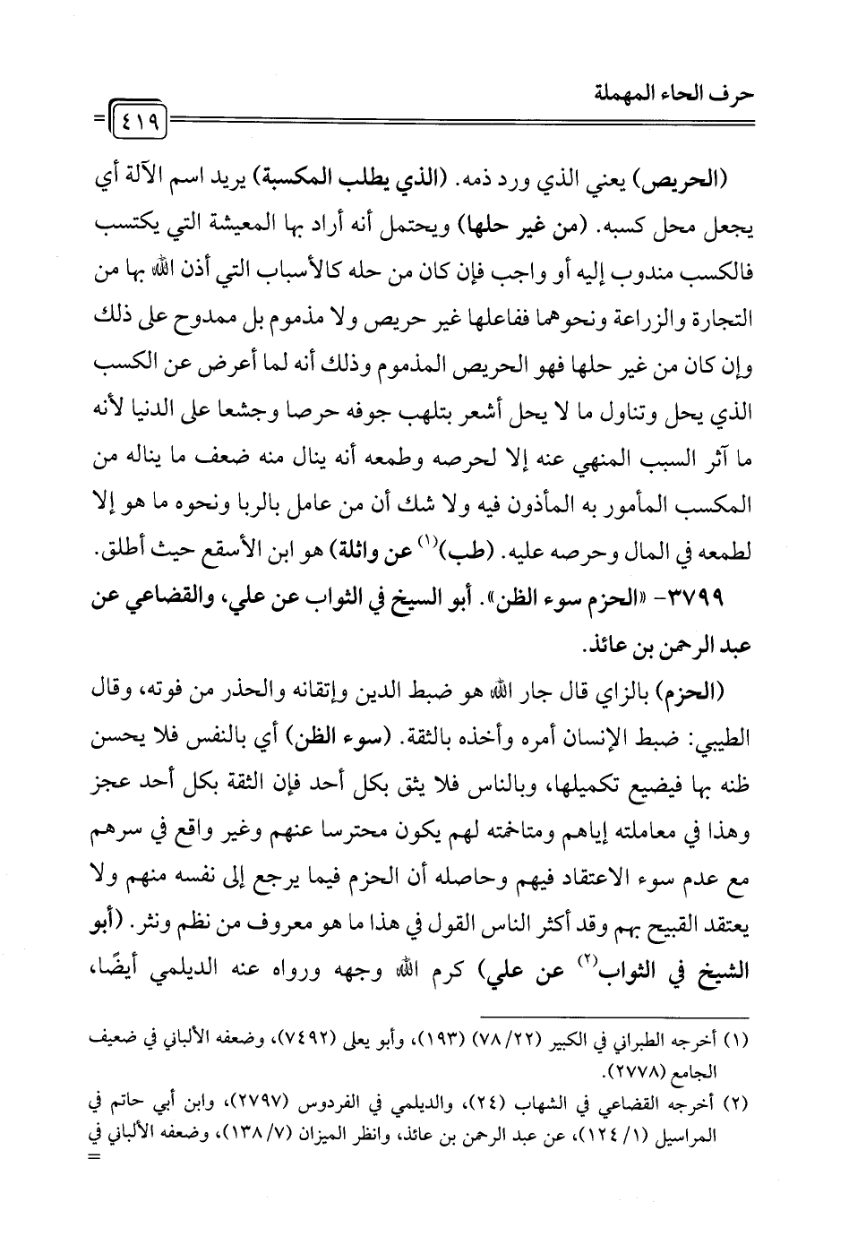 3799 - "الحزم سوء الظن". أبو السيخ في الثواب عن علي، والقضاعي عن عبد الرحمن بن عائذ.