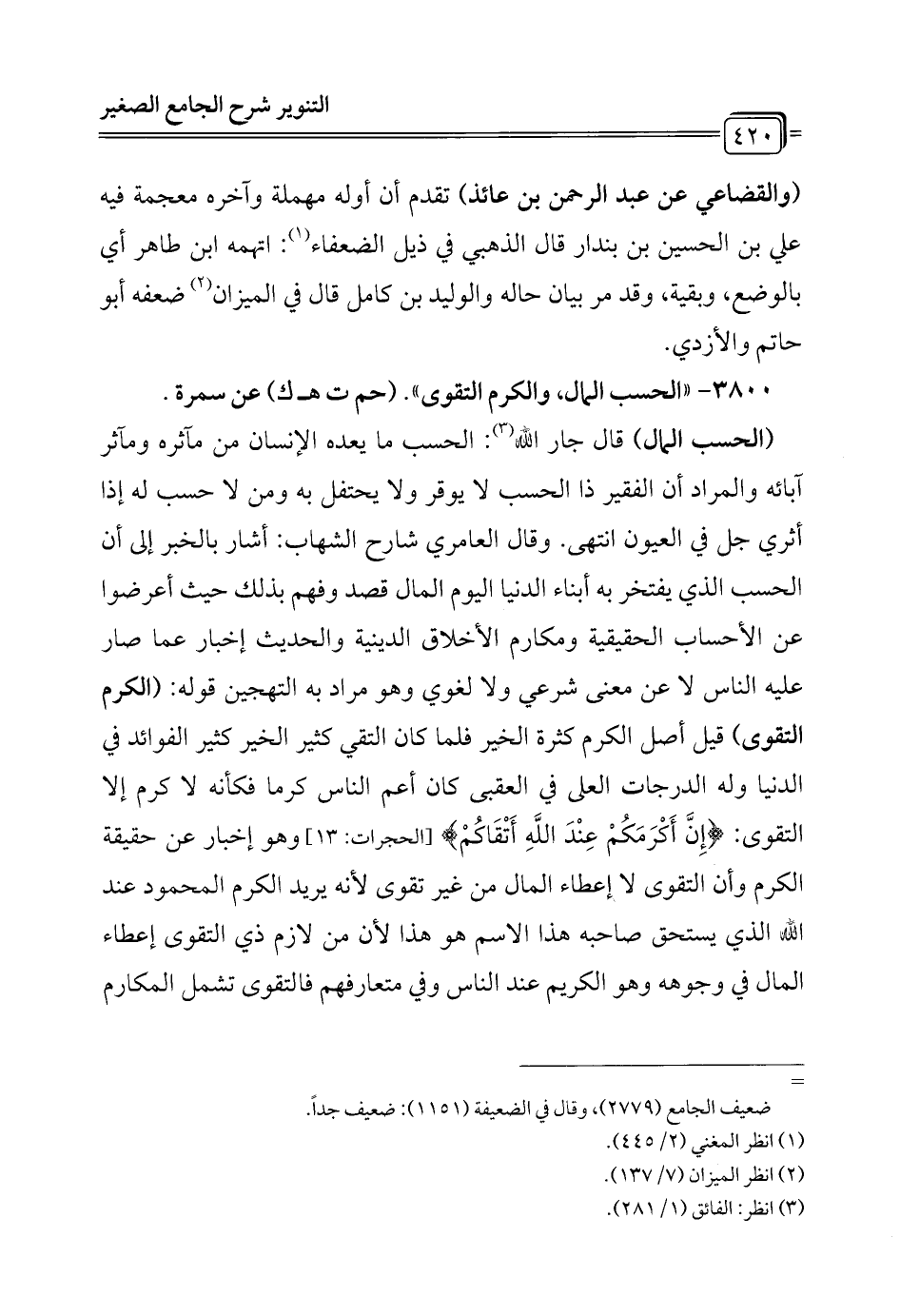 3800 - "الحسب المال، والكرم التقوى". (حم ت هـ ك) عن سمرة.