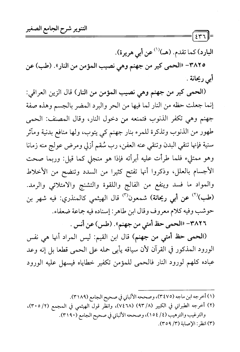 3825 - "الحمى كير من جهنم وهي نصيب المؤمن من النار". (طب) عن أبي ريحانة.