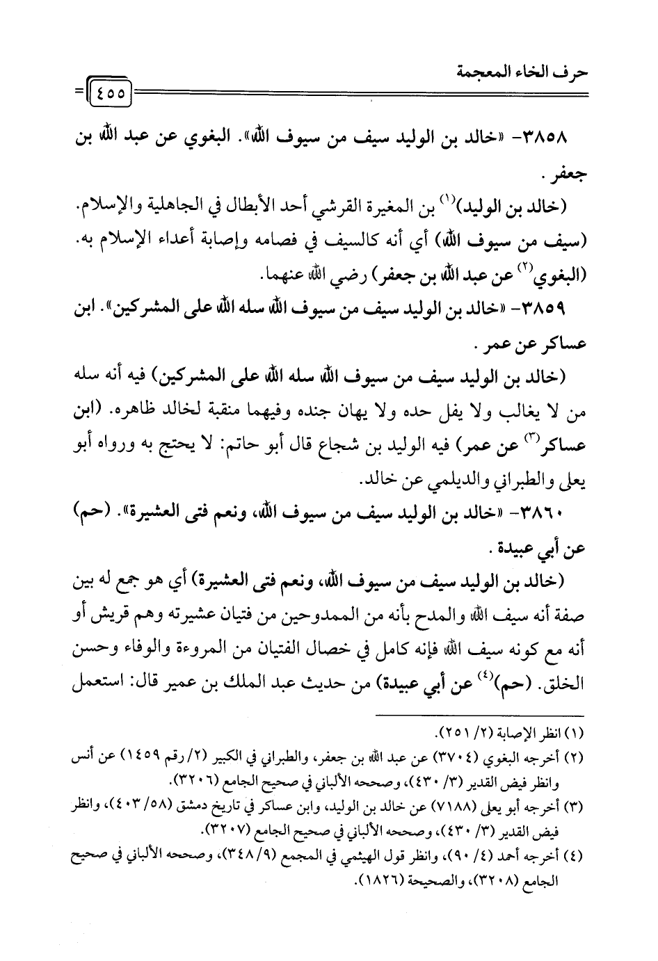 3858 - "خالد بن الوليد سيف من سيوف الله". البغوي عن عبد الله بن جعفر.