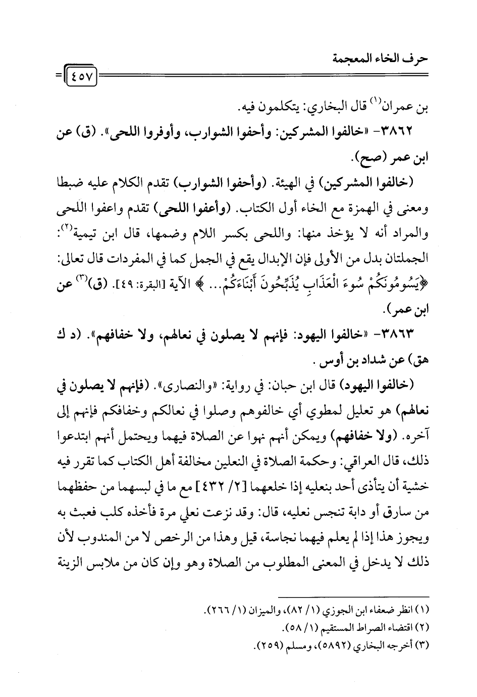3863 - "خالفوا اليهود: فإنهم لا يصلون في نعالهم، ولا خفافهم". (د ك هق) عن شداد بن أوس.