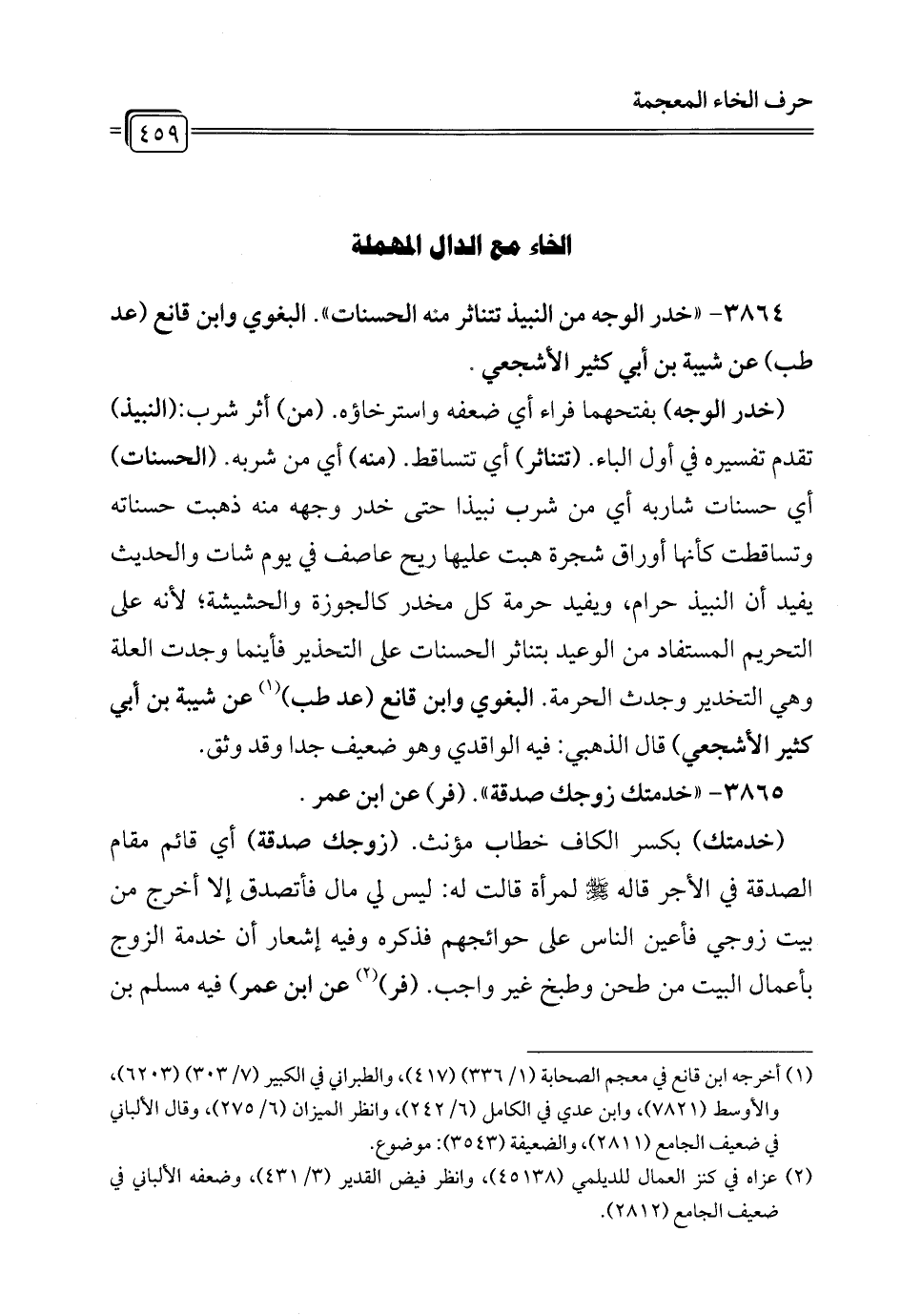 3864 - " خدر الوجه من النبيذ تتناثر منه الحسنات". البغوي وابن قانع (عد طب) عن شيبة بن أبي كثير الأشجعي.