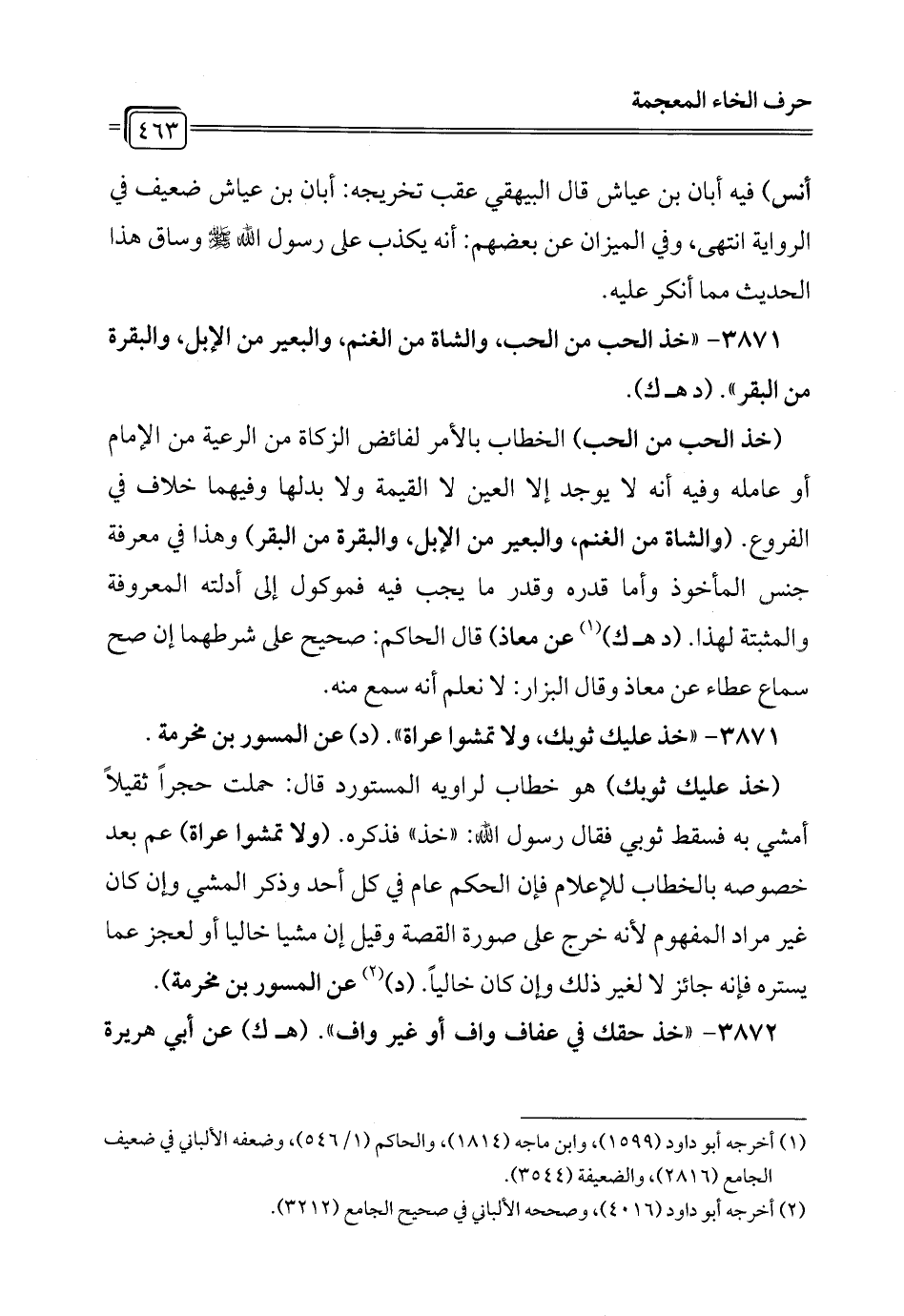 3871 - "خذ الحب من الحب، والشاة من الغنم، والبعير من الإبل، والبقرة من البقر". (د هـ ك).