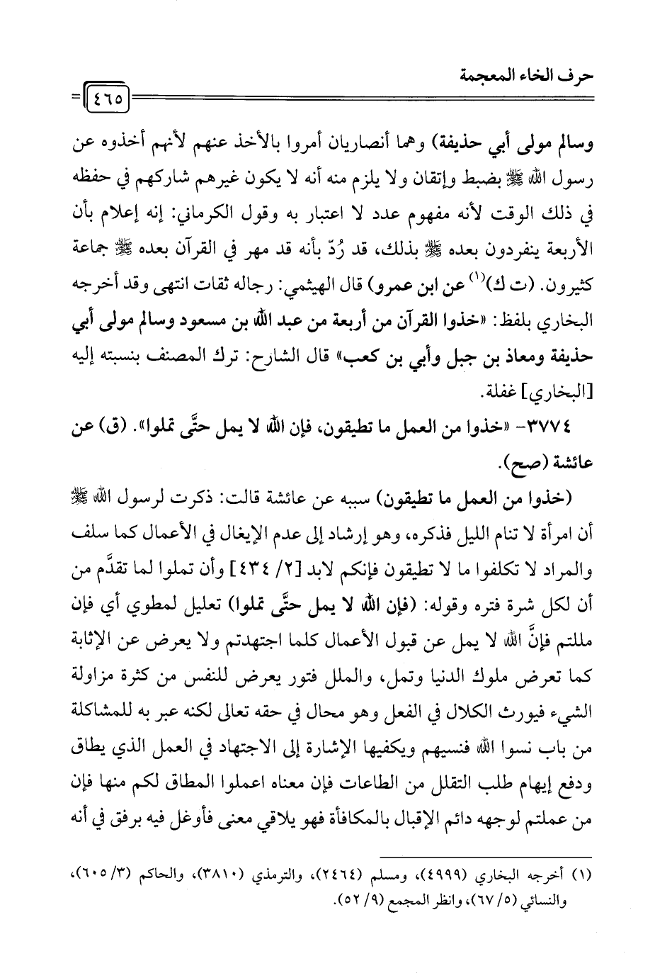 3774 - "خذوا من العمل ما تطيقون، فإن الله لا يمل حتَّى تملوا". (ق) عن عائشة (صح).