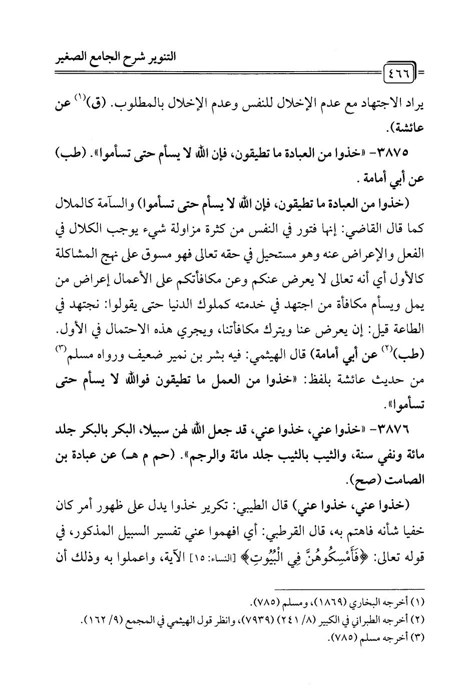3875 - "خذوا من العبادة ما تطيقون، فإن الله لا يسأم حتى تسأموا". (طب) عن أبي أمامة.