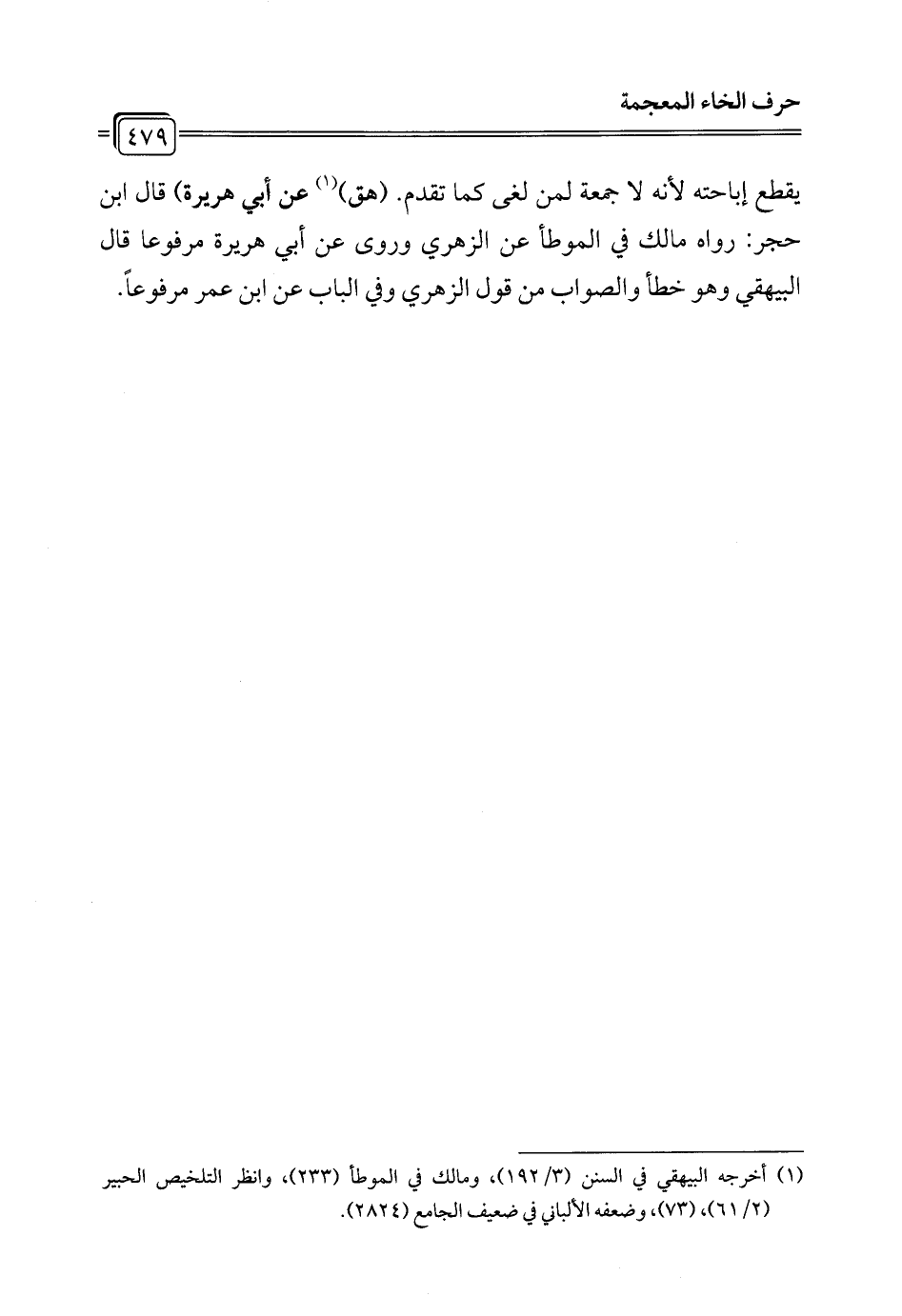 (¬1) أخرجه البيهقي في السنن (3/ 192)، ومالك في الموطأ (233)، وانظر التلخيص الحبير (2/ 61)، (73)، وضعفه الألباني في ضعيف الجامع (2824).