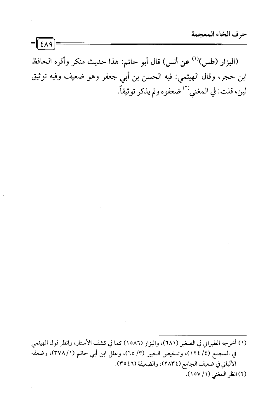 (¬1) أخرجه الطبراني في الصغير (681)، والبزار (1586) كما في كشف الأستار، وانظر قول الهيثمي في المجمع (4/ 124)، وتلخيص الحبير (3/ 65)، وعلل ابن أبي حاتم (1/ 378)، وضعفه الألباني في ضعيف الجامع (2834)، والضعيفة (3546).